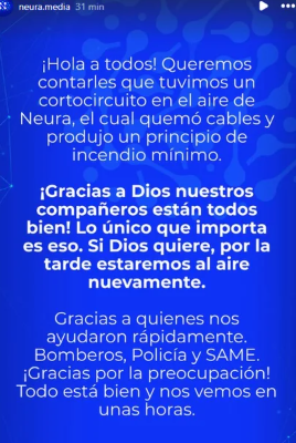 Afortunadamente, ninguno de los empleados que se encontraban en el lugar resultó herido. Desde Neura Media aseguraron que esperan poder continuar con la programación habitual durante la tarde de este mismo viernes.